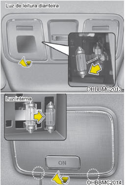 Se seu veículo for equipado com a lâmpada do sensor de intrusão/inclinação, recomendamos consultar uma concessionária autorizada Hyundai Motor Brasil (HMB) para fazer a substituição.